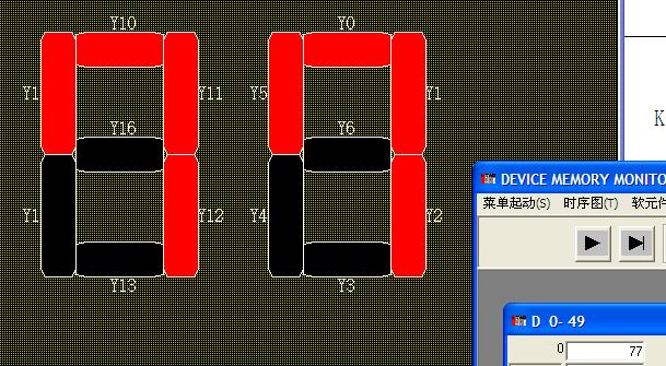 通過(guò)兩位七段顯示,可以顯示寄存器內(nèi)的值,寄存器內(nèi)的值變化,顯示也隨之變化,可顯示00-F9(十進(jìn)制159),F(xiàn)為高位(Y10-Y17),9為低位(Y0-Y7)。