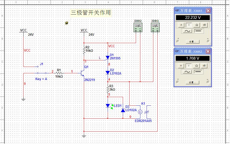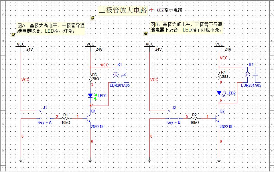 還有與上上張圖,LED不亮的那張,只差了一個(gè)繼電器(有一個(gè)二極管是泄放回路用的,暫不用管它),但LED卻不亮。不明白