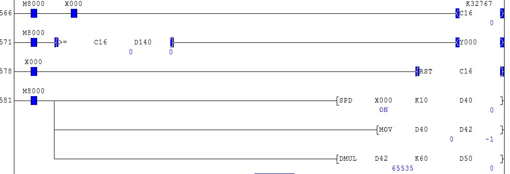 因?yàn)槟鉙PD那裡用了X0,所以X0不可以用作高速計(jì)數(shù),即C235不可用。不衕速度用個(gè)D值保存再付過(guò)去就行