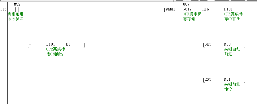 QD75D1模塊里監(jiān)控地址817是 命令到位標志 現(xiàn)在想抽取里面的OPR完成標志的信息(OFF→ON) 以控制伺服定位完成后進行自動前進 PS:因為工藝要求里未知前進距離 所以沒法用定位數(shù)據(jù) 是不是只能通過自鎖JOG前進控制? 找了半天沒找到能條件控制的命令 只有條件控制定位數(shù)據(jù)的定位程序 下圖: