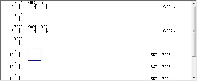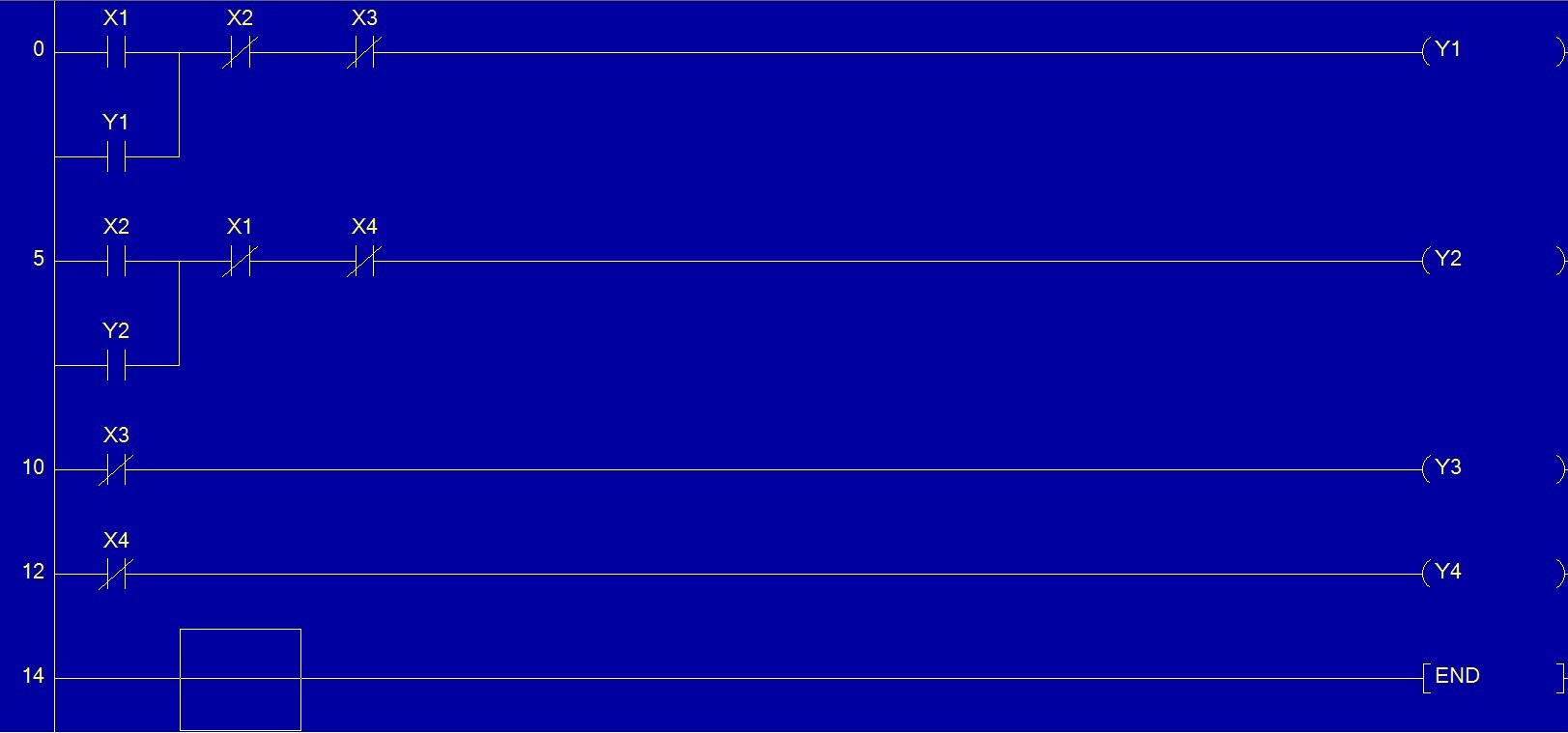 開關(guān)x1和X2互鎖,感應(yīng)器X3和X4 。指示燈Y3和Y4。但視乎少點(diǎn)什么。電磁線圈Y1和Y2怎么停下來?