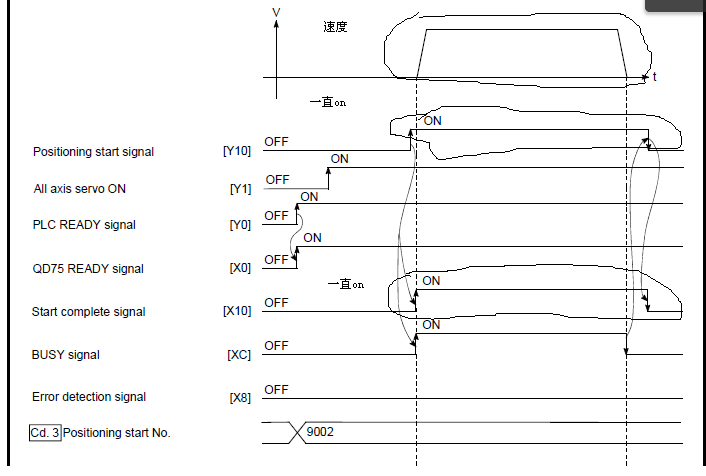 最近在學習qd75m1 別人的程序 我在研究學習 發(fā)現Y2F0(position start )為PLC給QD75的啟動命令,新X2F0為qd75給PLC的啟動完成信息。發(fā)現程序剛啟動Y2F0 而后就RST Y2F0