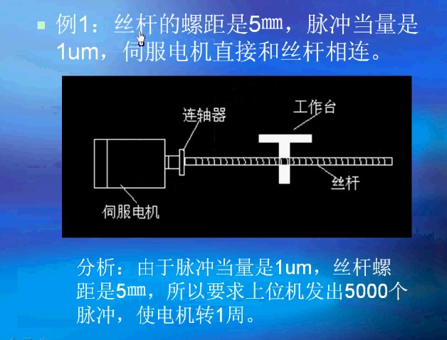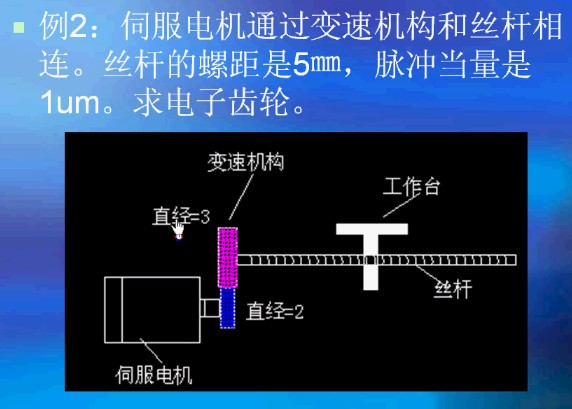 計(jì)算電子齒輪比的目的就是為了使你的上位機(jī)發(fā)出的一個(gè)脈沖能讓工件運(yùn)動(dòng)到你設(shè)定精度的行程,精度為0.01mm ,就是一個(gè)脈沖工件運(yùn)行0.01mm。