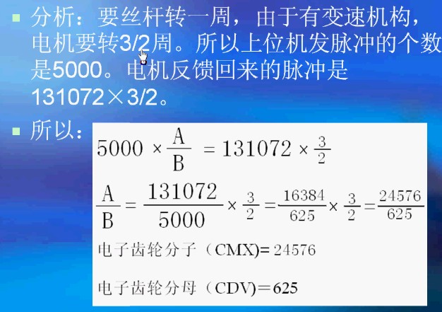 (分辨率x精度)/(絲桿導(dǎo)程x減速比)=分子/分母
