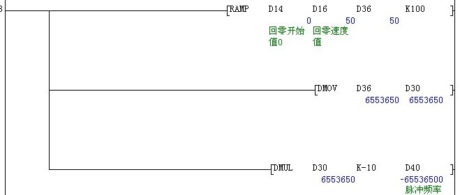 在控制伺服電機的時候,使用PLSY脈沖輸出指令時,要求的定位速度很快,頻率很高,而且是負數(shù),想用RAMP函數(shù)來實現(xiàn)加速和減速的緩沖,RAMP斜坡函數(shù)16位,如何得到一個32位的斜坡?