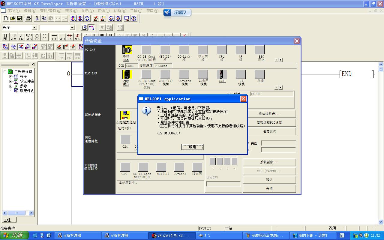 引用引用第4樓korlaliu于2014-01-09 13:21發(fā)表的 :版主按照附件里的說明還是無法通信。有幾個問題請教下,1. 編程線驅(qū)動在設(shè)備管理器里端口下有了,有的說通用串行總線下也要增加一項,我的沒有增加項,有影響嗎?2. 我用的xp 系統(tǒng),有關(guān)系嗎,軟件都是論壇工控下載頁面的。3. COM 口的傳輸速率設(shè)置多少合適?從大到小都試了,還是不行。4. plc 端我只接了電源線。型號,fx3u-48mr 。.......