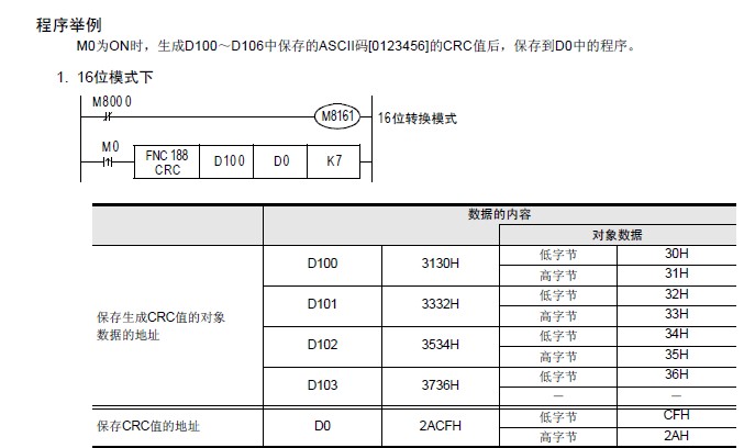 我接觸3U的PLC 看了3U的指令手冊 RTU通信的時(shí)候不用像以前寫一大堆 的CRC校驗(yàn)程序,用指令CRC就可以了 ,但是我把指令用上去了但是CRC指令算不出校驗(yàn)碼!我不知道哪里出了問題,請好心的師傅 能不能寫個(gè)用CRC指令算校驗(yàn)的樣本程序呀!先謝謝啦!