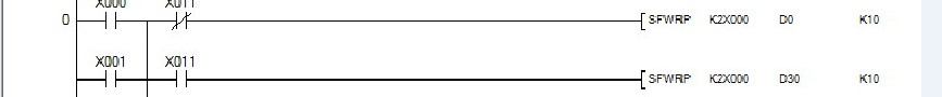 意思就是說(shuō):當(dāng)x0從OFF→ON時(shí),D0的內(nèi)容被存入d2 d1的內(nèi)容為1,當(dāng)D0內(nèi)容變更后,x0再次OFF→ON時(shí),這個(gè)D0的內(nèi)容被存到D3 ,D1變?yōu)?  。以此類推。 D0為源  D1,,,,D10 10點(diǎn),D1為指示器