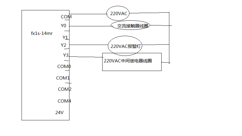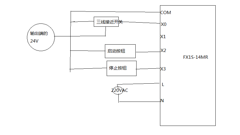第一個圖三線感應器可以接plc24V電源,第二個圖com搞錯了,com是plc直流負極。應該com0對應y0.com1對應y1