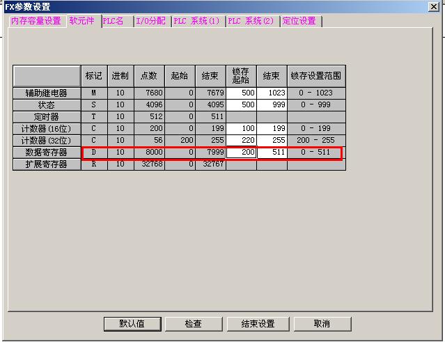 FX系列PLC的數(shù)據(jù)寄存器斷電保持的號(hào)是固定的你可在程序PLC參數(shù)中看見(jiàn)和設(shè)置