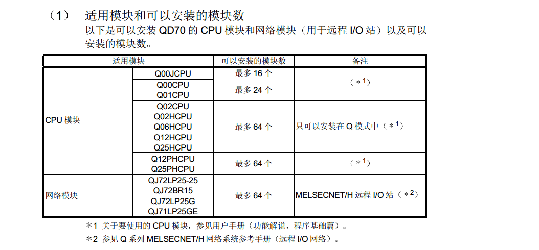 Q01UCPU可以帶QD70和QJ71C24N吧,可這手冊上居然沒有