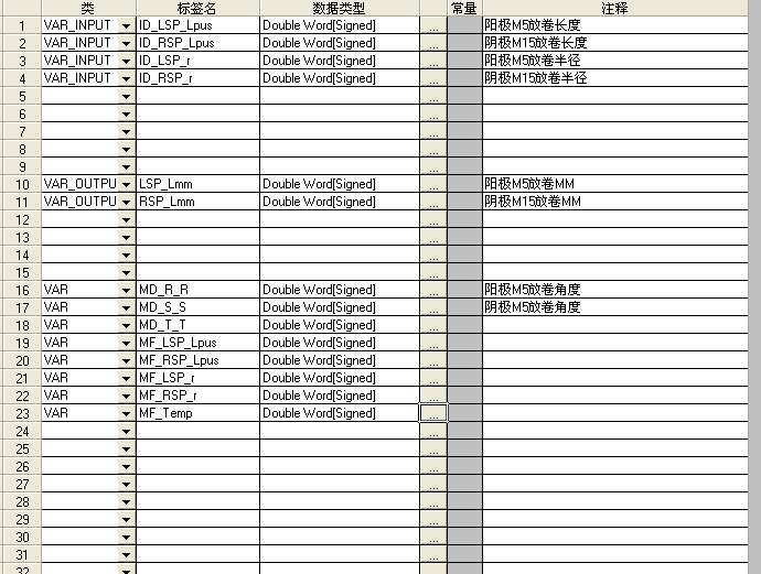 控制要求:放卷電機(jī)放卷過(guò)程中收到 感應(yīng)器信號(hào)后計(jì)算放卷電機(jī)走了多少mm.因?yàn)橛懈↑c(diǎn)運(yùn)算想用ST語(yǔ)言寫,但沒有寫過(guò),求大神支招!