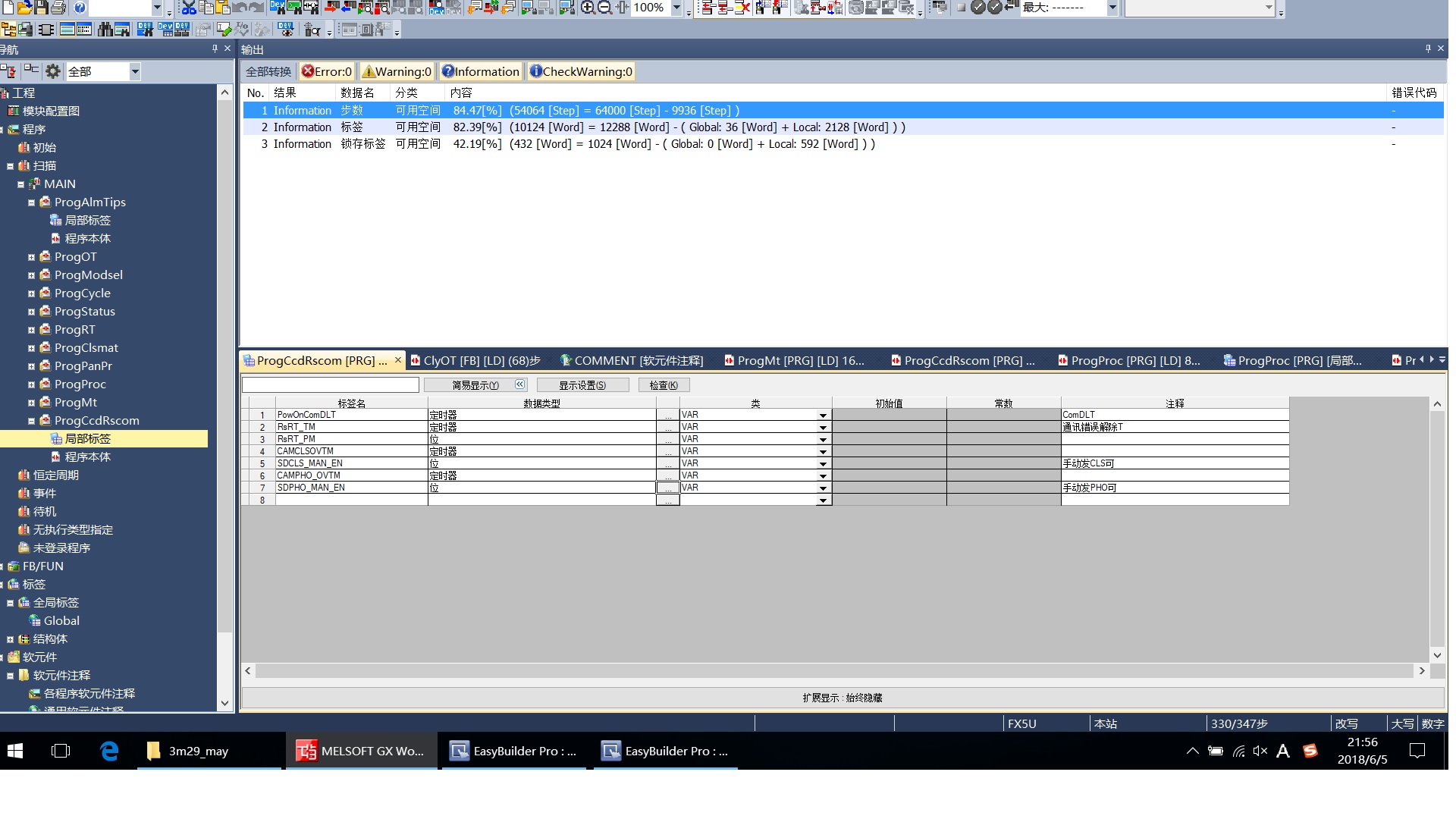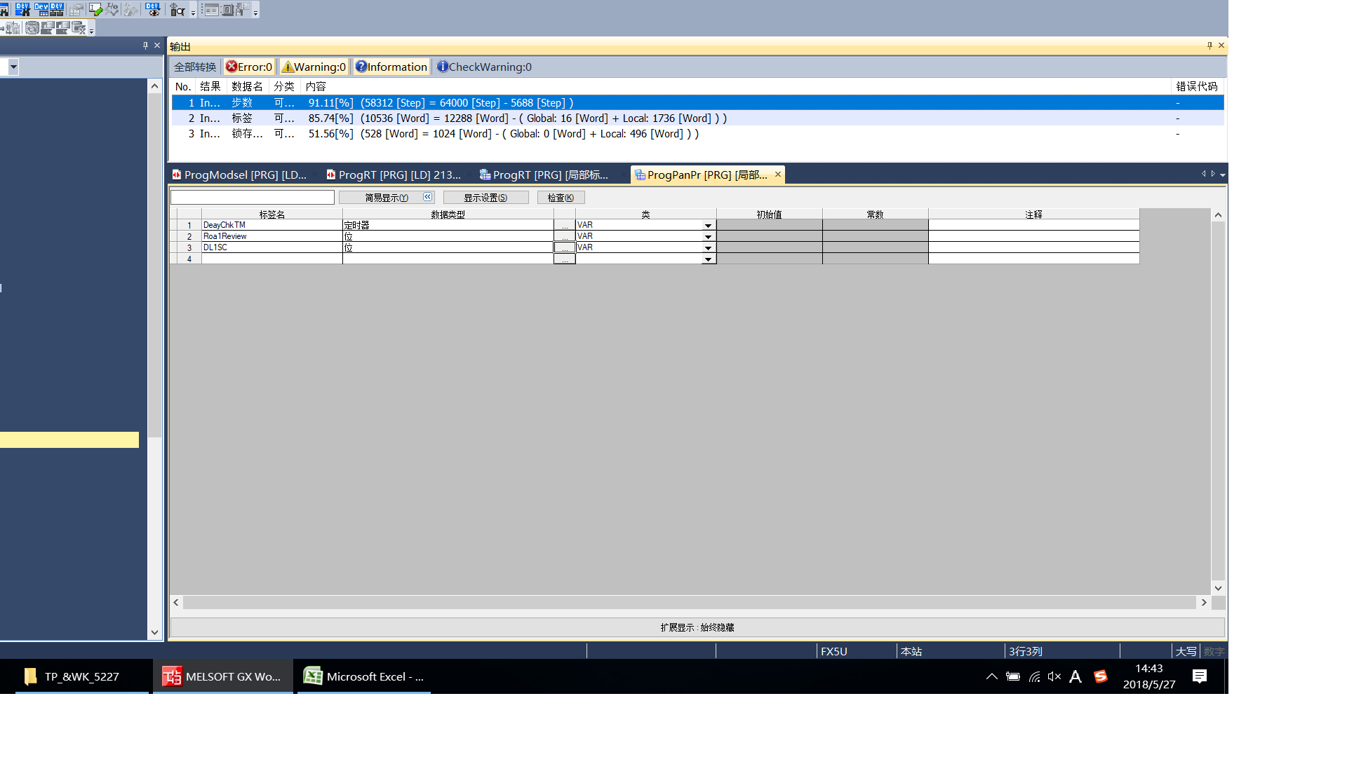 網(wǎng)上看到使用FX5U寫結構化程序的很少,所以現(xiàn)在自己動手做一個,由于初次使用FX5U寫結構化程序,遇到個問題,如何了解FX5U程序的標簽及元件分布情況,在哪里可以看到?請朋友賜教,感謝指點!附圖