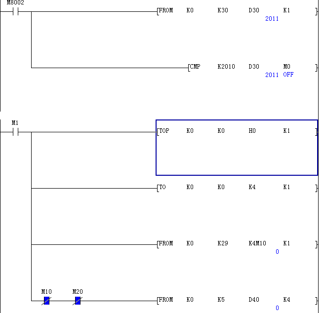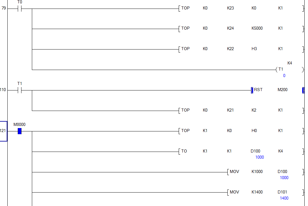 我用FROM K0 K24 D100 K1,得到D100是0,并測出#23的值是0。后面我又試了一下,TOP K0 K20 K1 K1,想?yún)?shù)復(fù)位下,但數(shù)據(jù)還是這樣的,