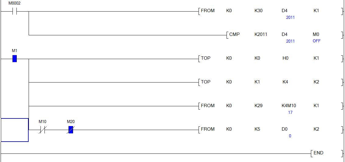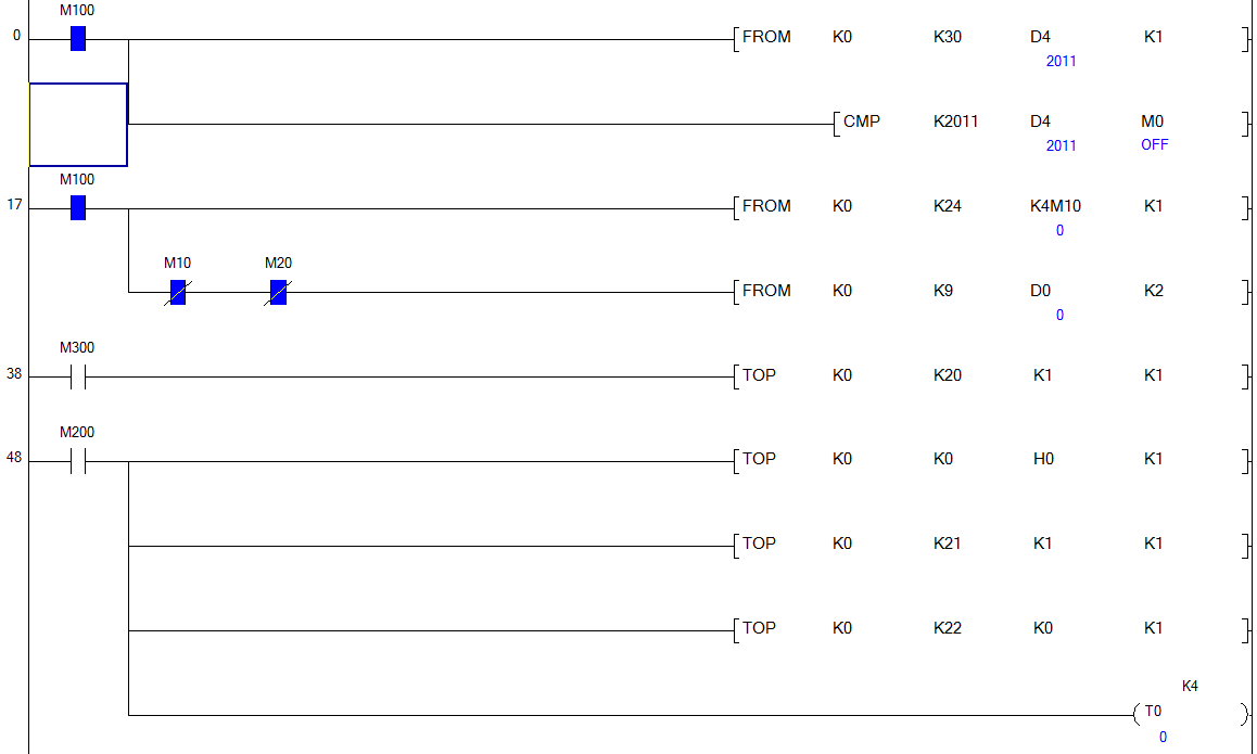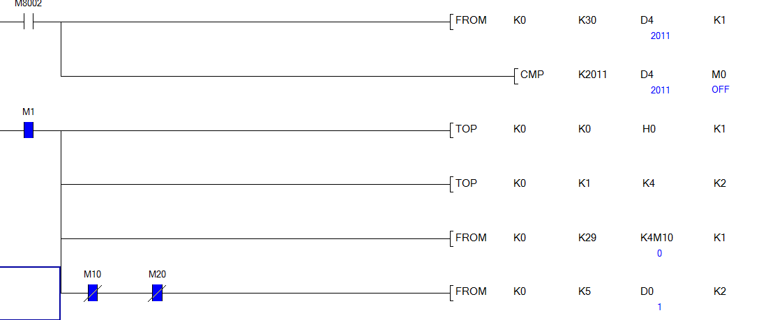 上面截圖不太對,我里面的程序是用TO K0 K1 K4 K1 的,我說的#29故障字為10001,應(yīng)該是b4位故障,查資料沒有這個(gè)代碼,而且是接電壓信號(hào)的情況下出現(xiàn),不外接信號(hào)時(shí)#29=0