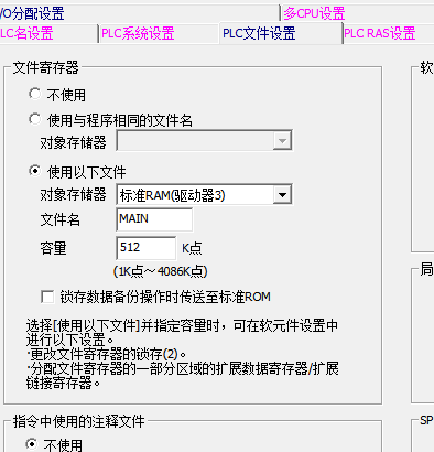 PLC參數(shù)--PLC文件設(shè)置----使用以下文件一欄里的容量最多能設(shè)置多少K?  512K不夠用 能繼續(xù)增加嗎?