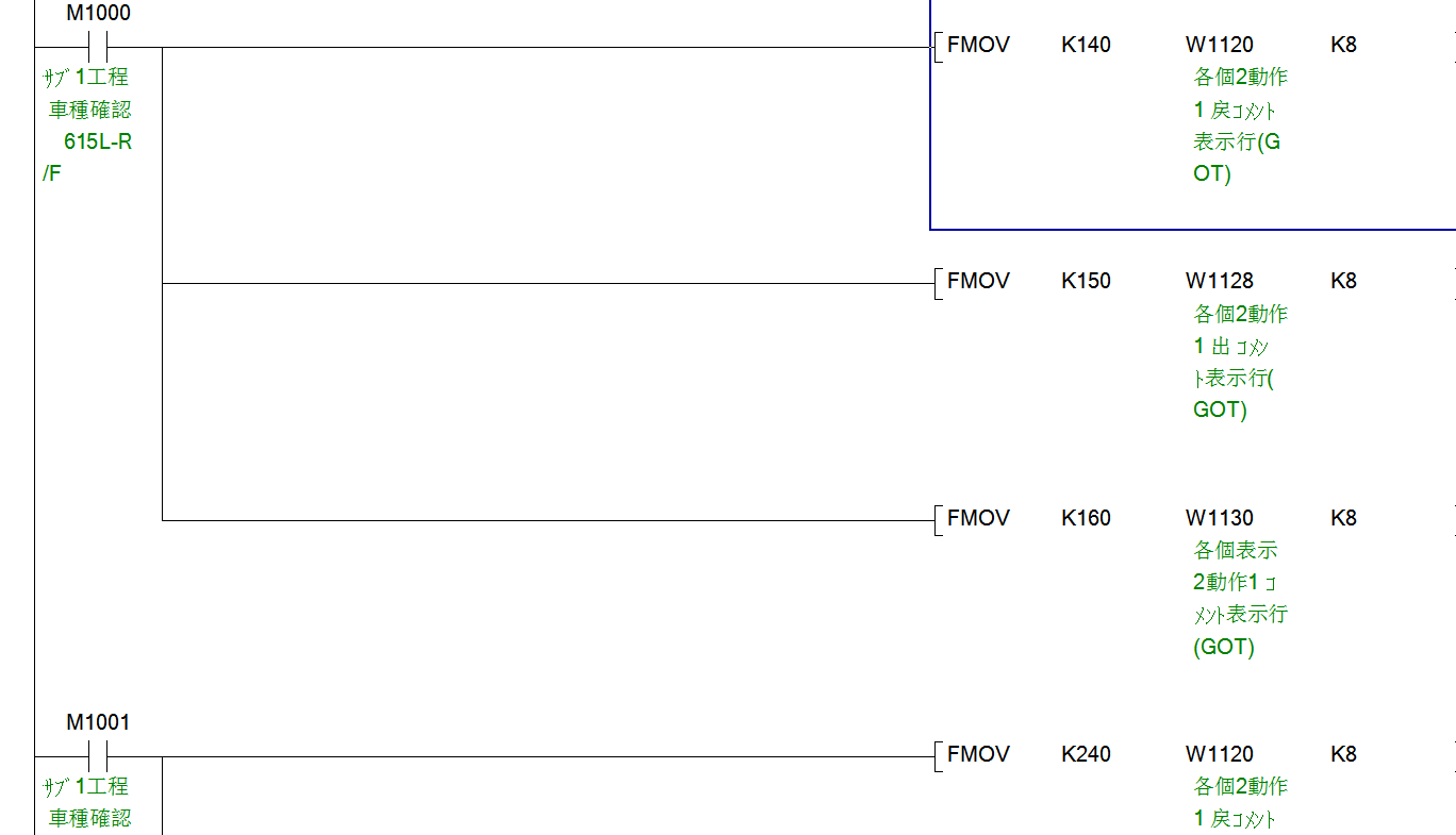 各位大神,現用三菱觸摸屏,注釋顯示用字地址顯示,原程序FMOV K140 W1120 K8,可正確顯示指定注釋組140-148.現追加一個頁面,追加程序 FMOV K1040 W11A0 K8  ,W11A0-W11A7八組注釋全顯示1040。和軟元件存儲器設定的數據有關嗎?