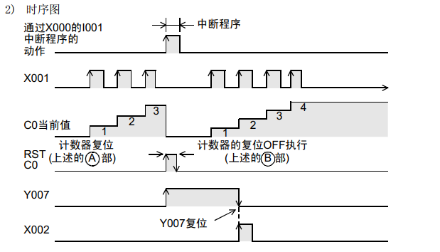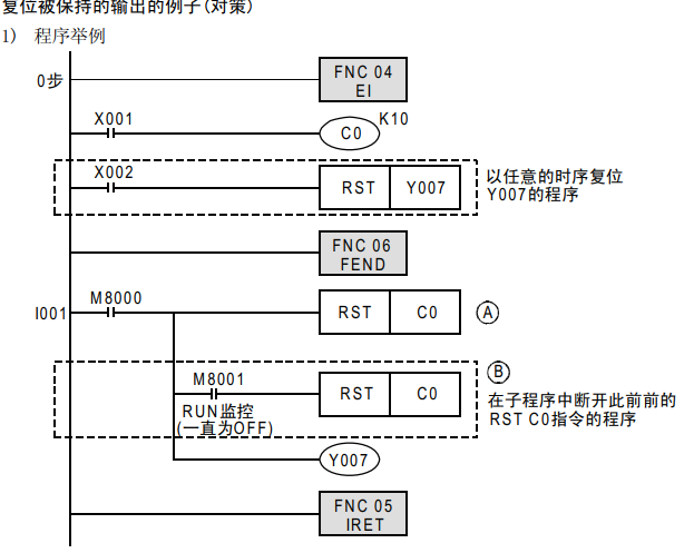 請教下,F(xiàn)X3U手冊里中斷指令——外部輸入中斷復位保持的例子,例子中的M8001會接通嗎?在什么時候接通?為什么M8000與M8001可以同時接通,讓B部分有效的?是手冊書寫錯誤了嗎?