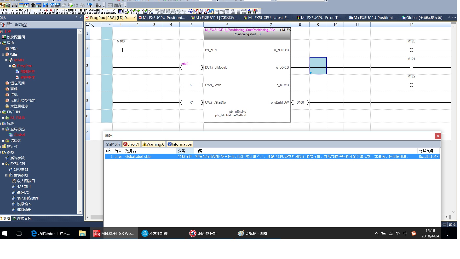 使用5U本身帶的庫,寫個(gè)測試程序,結(jié)果提示如此,不明白,不知GXW3的編譯設(shè)置在哪? 元件分配呢?不像松下以前用,還有點(diǎn)經(jīng)驗(yàn),有會用三菱FX5U的嗎,一起交流下