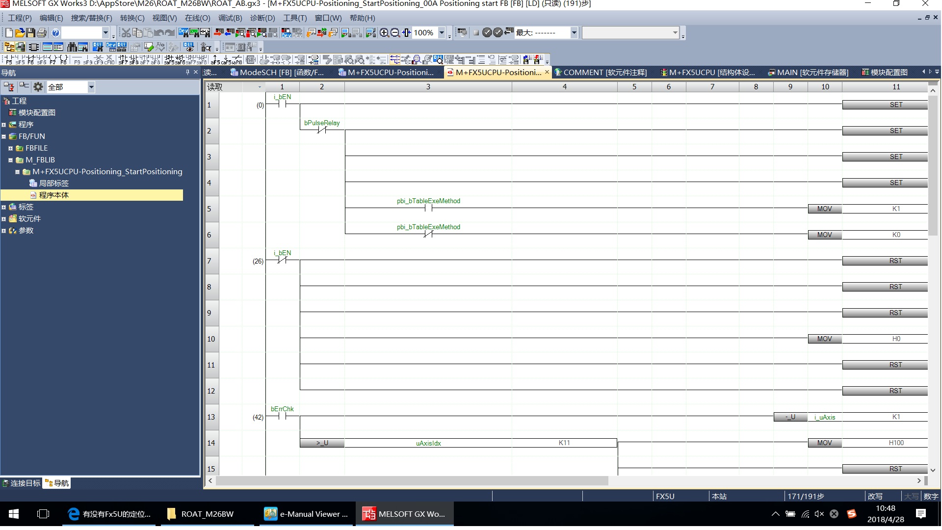 目前準(zhǔn)備用FX5U做個結(jié)構(gòu)化程序,但發(fā)現(xiàn)幾乎找不到這樣的例程,三菱GXW3里沒有,網(wǎng)上也沒有,如果寫一個通用多軸定位的FB,比如回原點,定位,不知道使用SM5660,SD***,支不支持FB賦值?有做過FX5U結(jié)構(gòu)化的朋友嗎,一起交流下