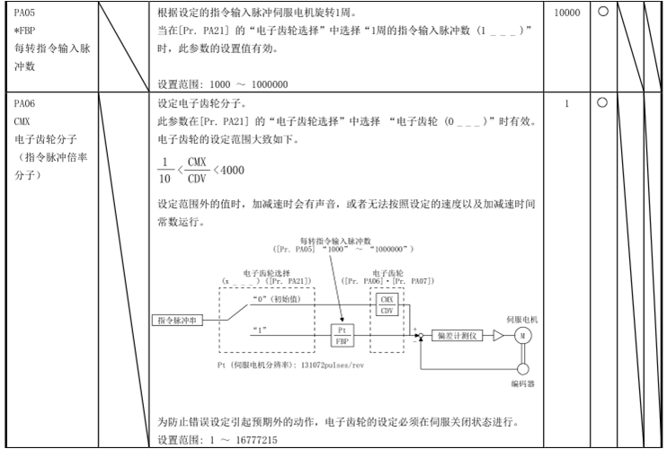 PA21設(shè)1,直接將PA05設(shè)成每圈的脈沖數(shù),一圈的脈沖數(shù)對(duì)應(yīng)導(dǎo)程10mm