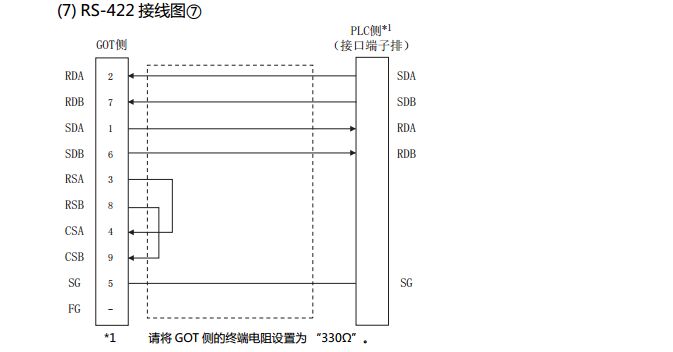 三菱觸摸屏你可以使用RS422的口,里面端子定義和接線如圖,接線完成后進行觸摸屏內(nèi)部設(shè)置,通訊方式配置成RS-422/RS485就可以了,希望可以幫到您
