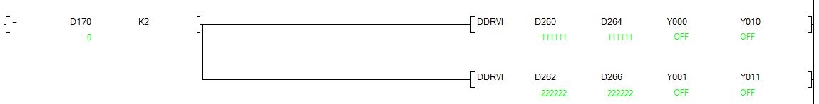 一臺FX3U可以控制兩臺伺服同時啟動同時停止嗎?要求Y1發(fā)的脈沖總數(shù)和脈沖頻率分別是Y0發(fā)出的脈沖總數(shù)和脈沖頻率相同倍數(shù),程序如圖
