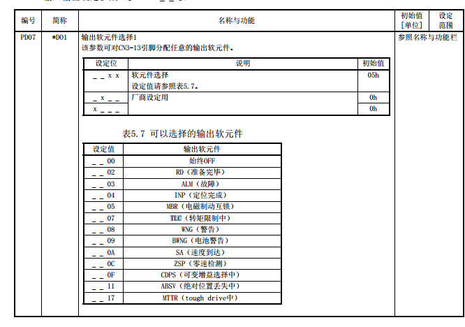 按照手冊(cè)上所說,將PD07的后兩位值設(shè)定為07,達(dá)到扭矩設(shè)定值后就會(huì)輸出該信號(hào)