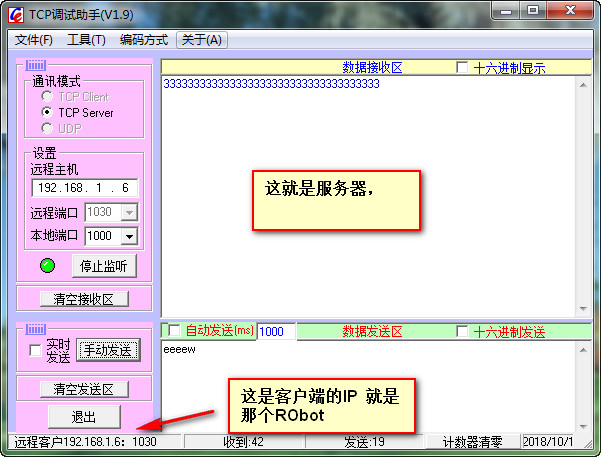 第四步:在服務(wù)器的電腦打開TCP/IP調(diào)試助手