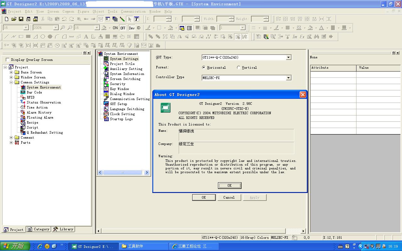 郁悶的是NND辛辛苦苦把英文本的GT Desinger2改的可以編輯-C觸摸屏了,結(jié)果還沒用幾次就結(jié)束了,三菱官方都出GT Works3了