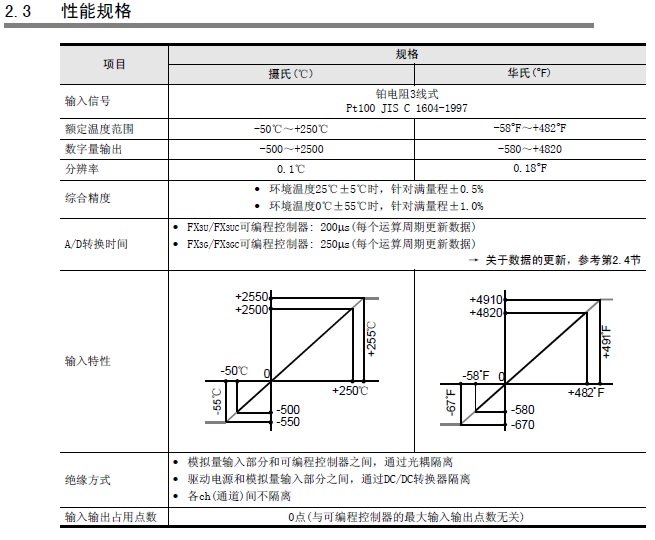 FX3U-4AD-PT-ADP的攝氏解析度是0.1度
