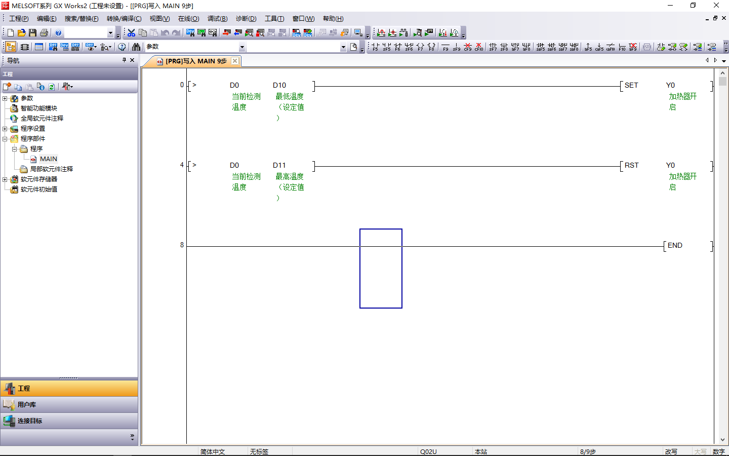 如果把溫度控制在一個相對較大的區(qū)間可以直接用開關(guān),如果控制在一個小區(qū)間(恒溫控制)就要使用PID了。 大區(qū)間的大致方向:利用溫度變送器算出當前溫度,跟設定做對比。加熱的話:小于多少度開始加熱,到達多少度停止加熱。制冷的話:高于多少度開始制冷,到達多少度停止制冷。 小區(qū)間的大致方向:直接查三菱的手冊,看看PID這個指令就好了。參數(shù)的話就根據(jù)效果慢慢調(diào)吧 樓主留言:謝謝,我想問一下這個開關(guān)怎么做? [ 此帖被小凳子在2019-08-08 16:51重新編輯 ] |