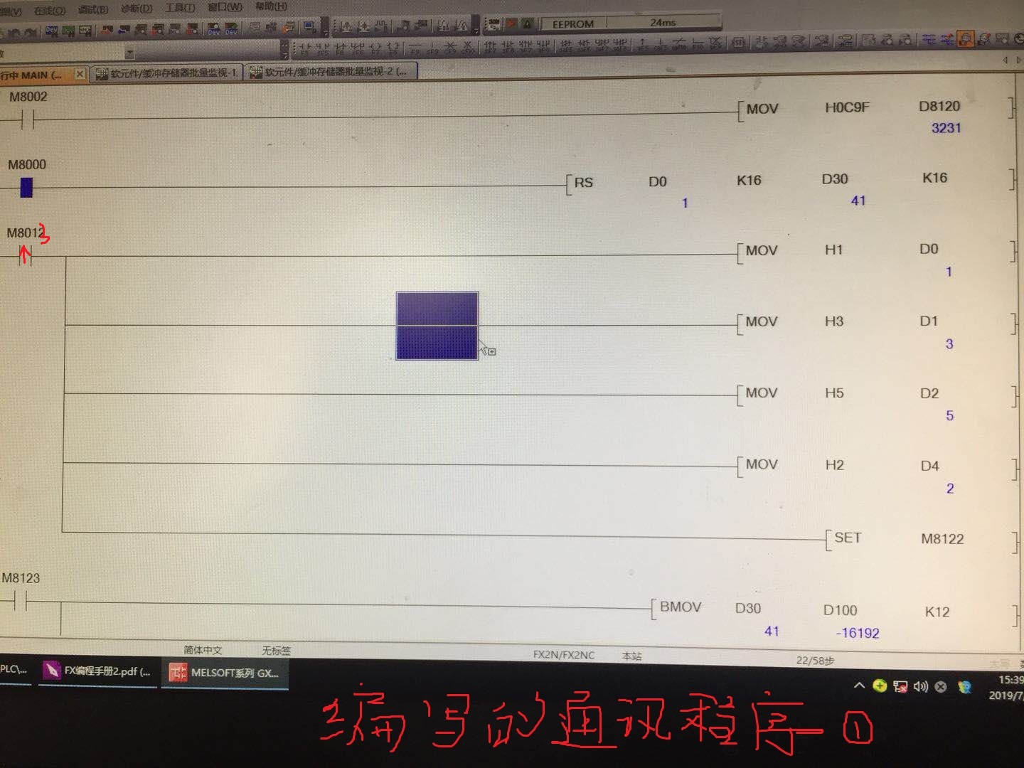 3、傳回來的數(shù)據(jù)處理,從第幾個數(shù)據(jù)開始?從D153開始?我在PLC的軟元件/緩沖存儲器監(jiān)視里看,數(shù)據(jù)D153-D162都是b0-b7在動作,b8-bF都是0,那這說明M8161在起做用。而且傳回來的數(shù)據(jù)D153-D162的b0-b7每個位都循環(huán)動作,按說我的儀表顯示是0,那相對應(yīng)的數(shù)據(jù)里b0-b7連續(xù)四個字節(jié)就應(yīng)都是0,沒有1才對的?(回頭我拍一點視頻看一下)
