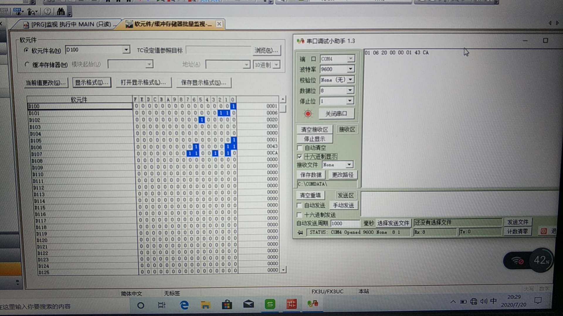 串口調(diào)試:用PLC發(fā)出和串口反回是一樣的數(shù)據(jù)。