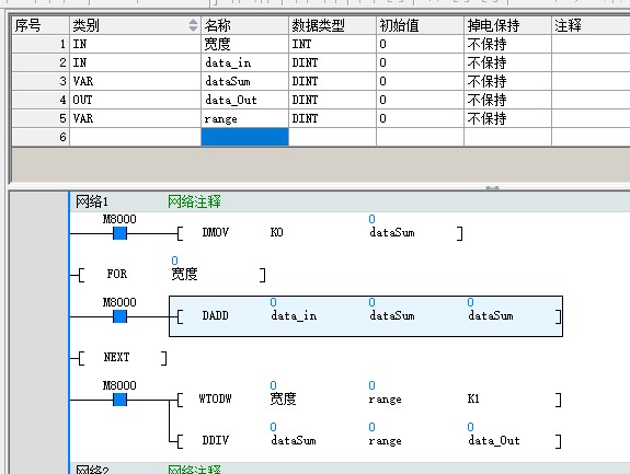 然後將暫存1~暫存100的數(shù)值以迴圈方式進行總和平均