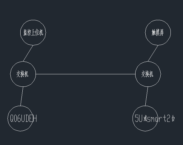 方案一:(遠(yuǎn)端5U+交換機(jī)+威綸通觸摸屏)5U連Q06通信映射IO,Q06連組態(tài)王通信