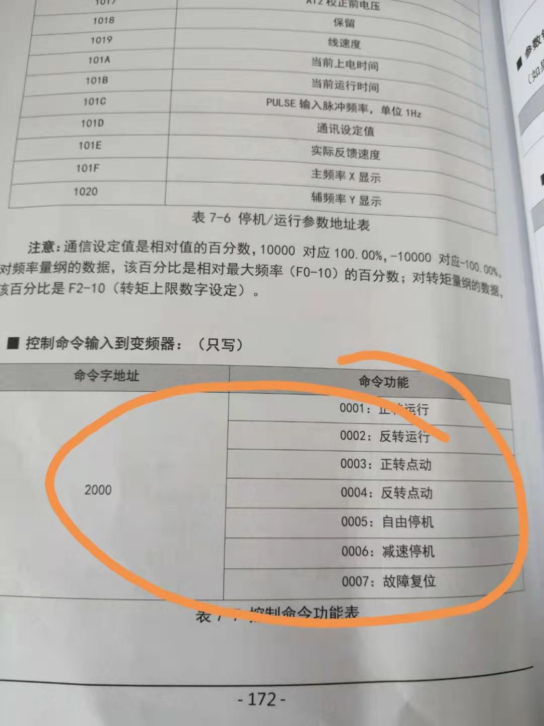 向2000這個地址里發(fā)送0001指令,使變頻器正轉(zhuǎn)