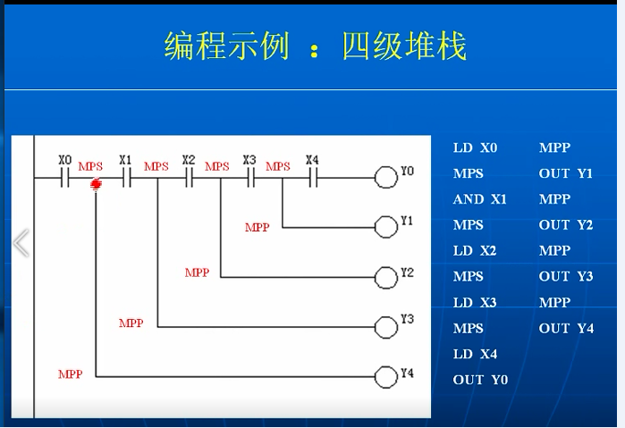 教材有問題,X2,X3,X4的操作碼也要用AND,還有現(xiàn)在人都用梯形圖,學(xué)用指令寫程序沒有意義。