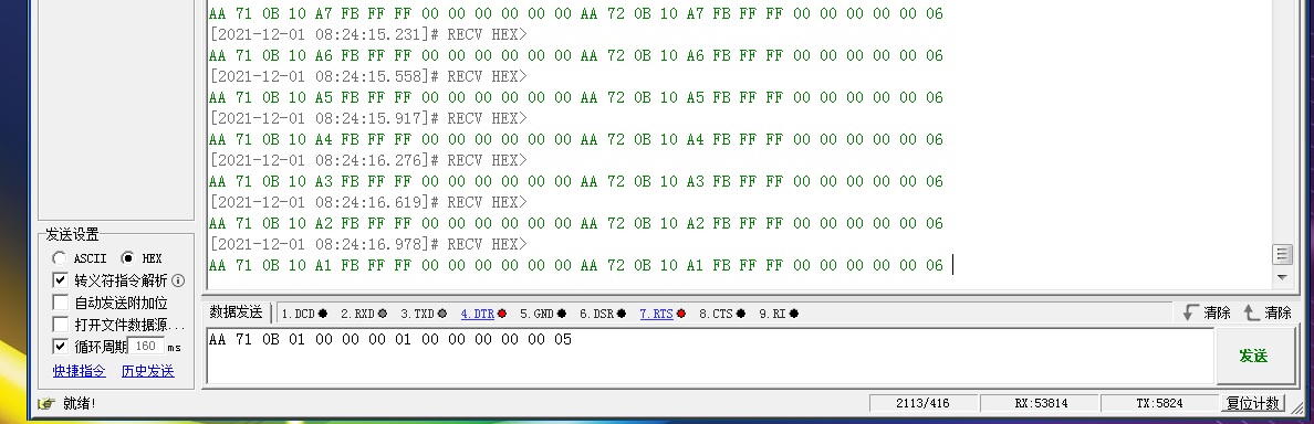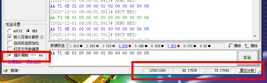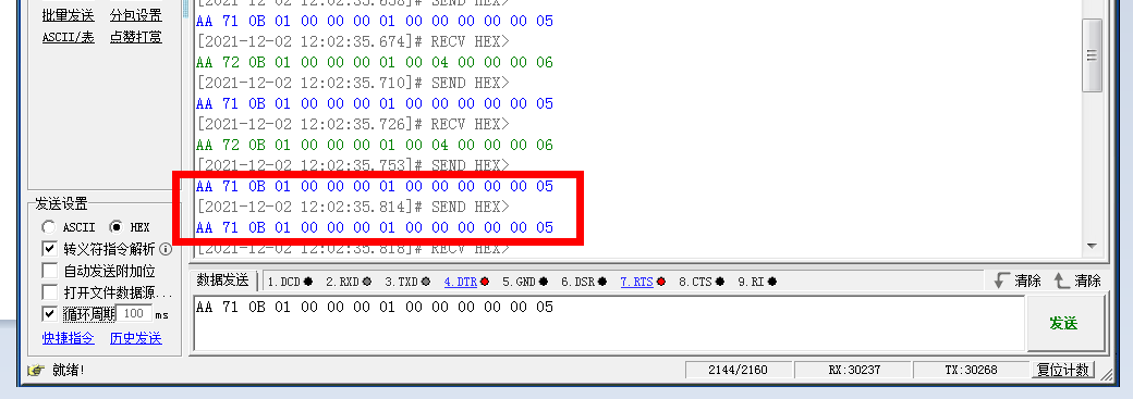數(shù)據(jù)收發(fā)速度太快不太容易觀察,現(xiàn)在用串口助手測試監(jiān)控收發(fā)能看到有發(fā)送給PLC、而PLC沒有回復(fù)(見下圖),我明白半雙工不能同時收發(fā)的,另外M7我在使用列表里面查過了沒有在其他地方使用,現(xiàn)在情況是上位機發(fā)送的比回復(fù)的多,也就是說PLC少回復(fù)了,正常接收要和發(fā)送的一樣多才對