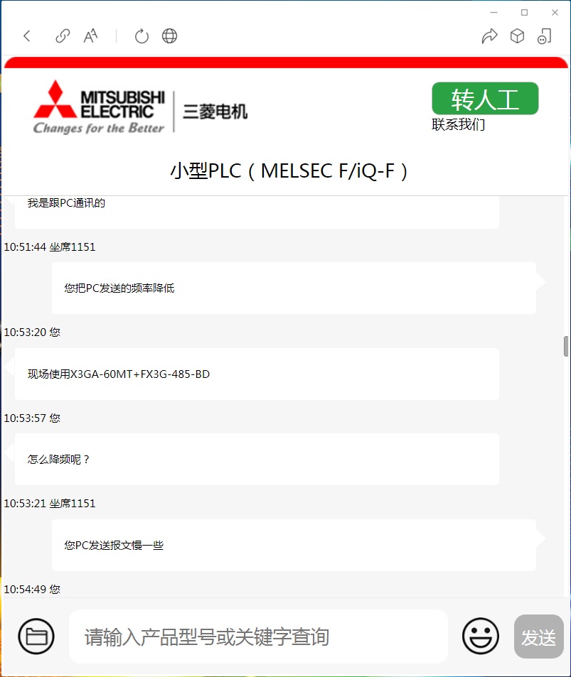 早上又問了三菱客服,說讓降低頻率發(fā)送報文,還是沒有找到問題所在