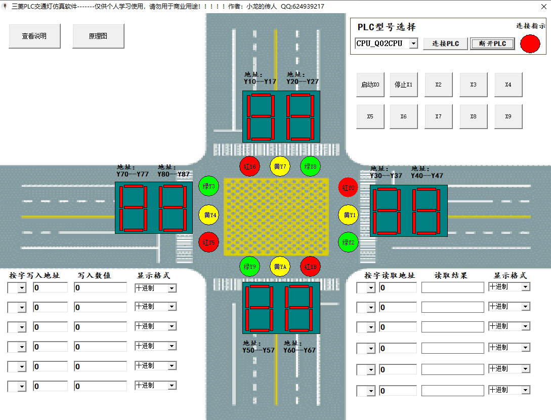 三菱PLC交通燈仿真學(xué)習(xí)軟件功能介紹: 與三菱GX Simulator2配合使用,模擬交通燈的控制,與三菱FX-TRN-BEG-C軟件類似,但是使用GX works編程軟件編寫程序及調(diào)試,可用指令更多,且功能接近實(shí)體PLC?蔀槌鯇W(xué)PLC無PLC硬件的朋友提供更好的幫助。先解壓后將MELSEC的文件拷貝到C:\Windows\System32,然后需要運(yùn)行.bat文件注冊,打開GX works 使用GX Simulator2仿真,打開 三菱仿真軟件.exe就可以使用了。鏈接:https://pan.baidu.com/s/1hMqsBKJp-SokFl2AapzOmQ 提取碼:pqi3