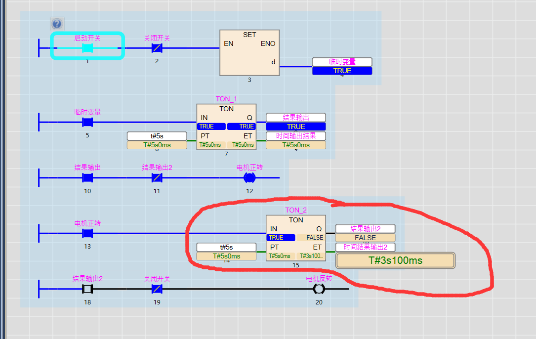 您好,那請問一下我應該怎么改動才能讓它最后一句程序結果輸出2接通執(zhí)行呢?