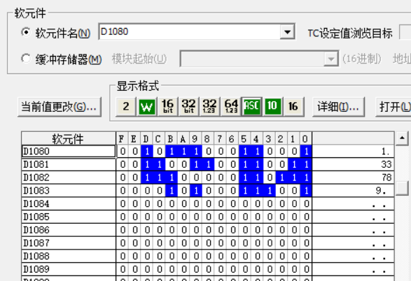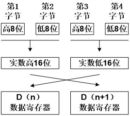 一個(gè)32位的實(shí)數(shù)用2個(gè)保持寄存器存儲(chǔ),高16位在前,低16在后,保持寄存器的存儲(chǔ)值分為兩個(gè)字節(jié)讀取,高8位在前,低8位在后。三菱PLC的兩個(gè)數(shù)據(jù)寄存器存儲(chǔ)一個(gè)32位的實(shí)數(shù)。低16位在前,高16位在后。經(jīng)圖中所示變換存儲(chǔ)位置后,再用32位實(shí)數(shù)格式顯示。