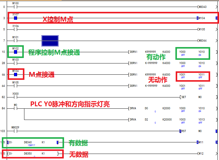編程軟件可以控制 X 口,M 點(diǎn)閉合,PLC輸入口不能控制 M點(diǎn),M點(diǎn)沒有反應(yīng)