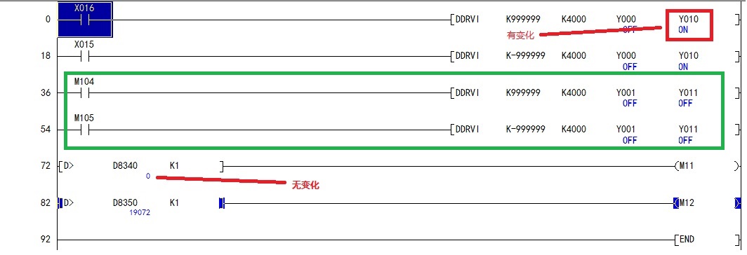 照搬網(wǎng)上的一條程序,控制元件由 M 換成 X 卻出問題,輸出的方向信號有,脈沖信號沒有,因?yàn)橛布拗,只能看D8340的數(shù)據(jù),請老師們看看是什么原因