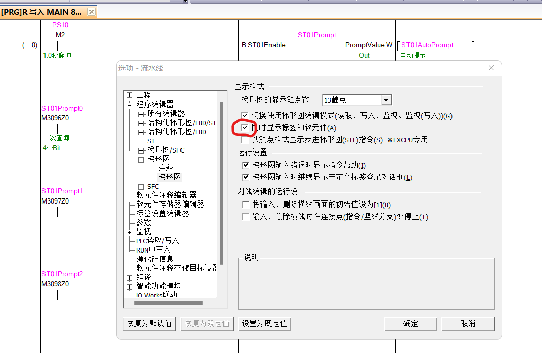 FB塊里只有標(biāo)簽無法同時顯示軟元件,每次查看都要看標(biāo)簽注釋很不方便,請老師幫我看下,程序見附件