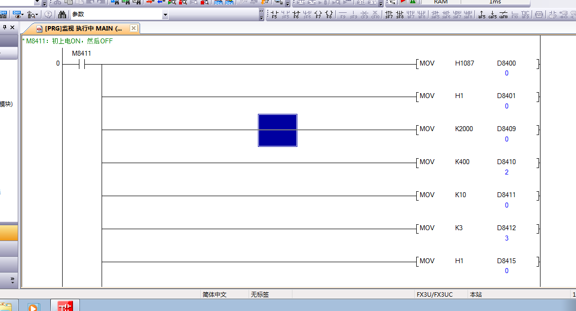 引用引用樓主qplcer于2022-12-12 10:20發(fā)表的 三菱FX3U的ModbusRTU通信參數(shù)寫入問題(有程序) :小弟使用三菱FX3U的485BD板擴(kuò)展插槽進(jìn)行modbusRTU通信,RTU通信需要使用M8411將參數(shù)寫入D8400,類似modbus無協(xié)議通信時M8002將參數(shù)寫入D8120,但無論如何都調(diào)試寫不進(jìn)去,必須使用M8411這個特殊繼電器,其只在上電一瞬間ON,請問各位如何就解決?