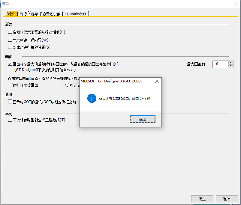 打開三菱的觸摸屏GOT 2000 軟件沒有畫面,還會(huì)顯示:超出可設(shè)置范圍,范圍5-720
