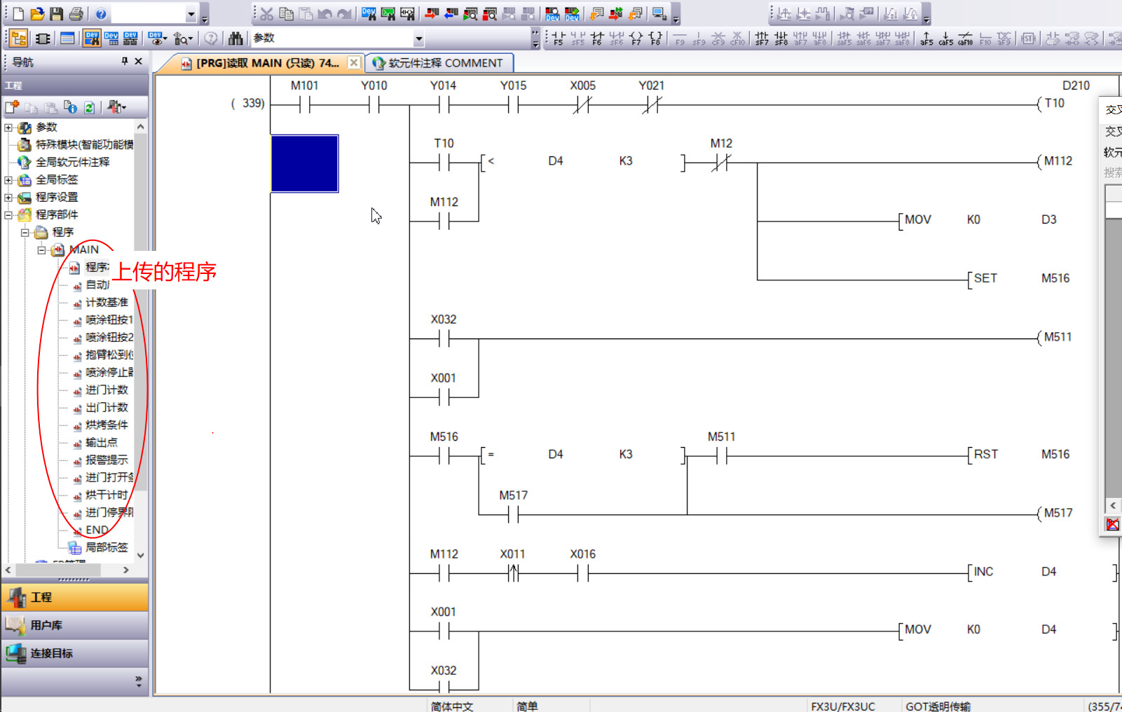 比對了一下,下載和上傳的程序中有若干個點(diǎn)不一致,說明是FX3U的BUG