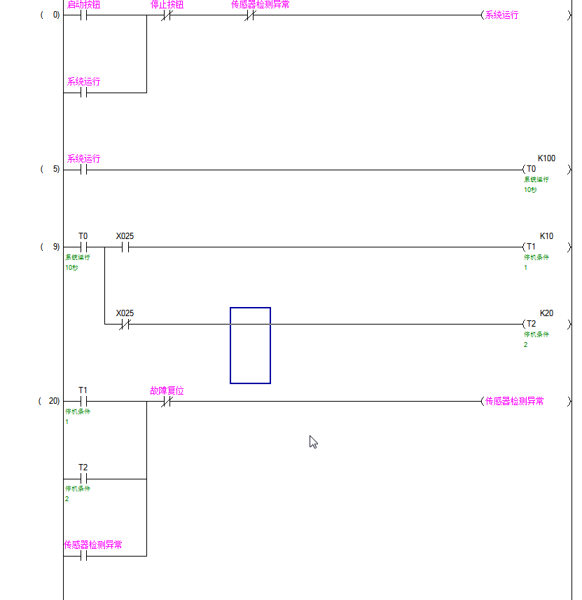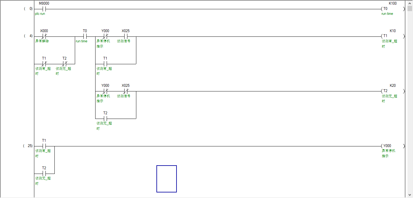 我來個極簡風,把M8000換成系統(tǒng)啟動信號,Y0代入停機程序。給你加了X00異常復位
